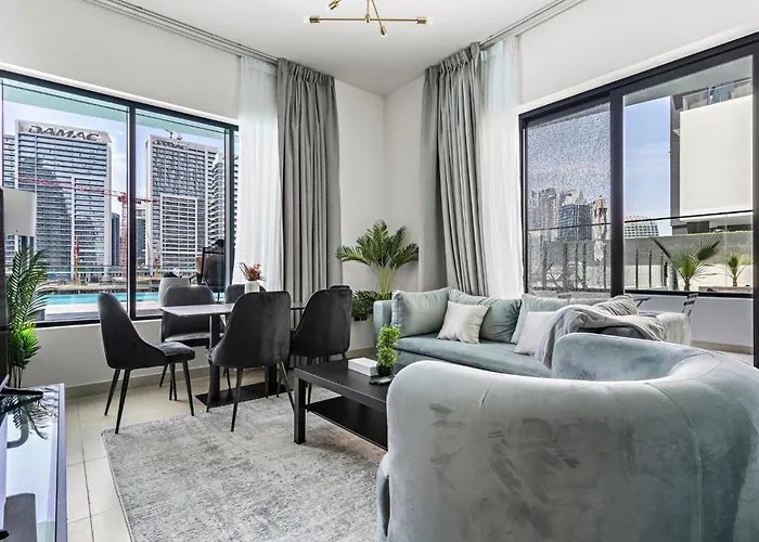 O apartamento Burj Khalifa View 2Br At Binghatti Canal Dubai está localizado a cerca de 10 minutos andando de Dubai Mall e a uma distância de 2.8 km de Praça Emaar. Wi-Fi e parque de estacionamento privado gratuito também estão disponíveis neste apartamento.